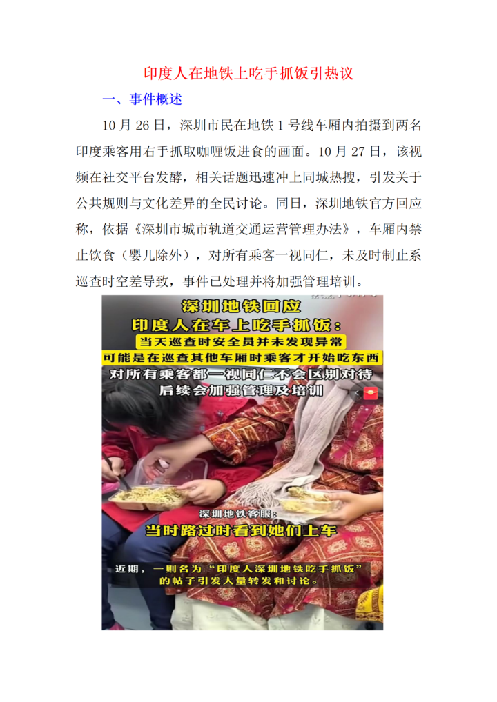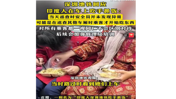 > 印度人在地铁上吃手抓饭引热议